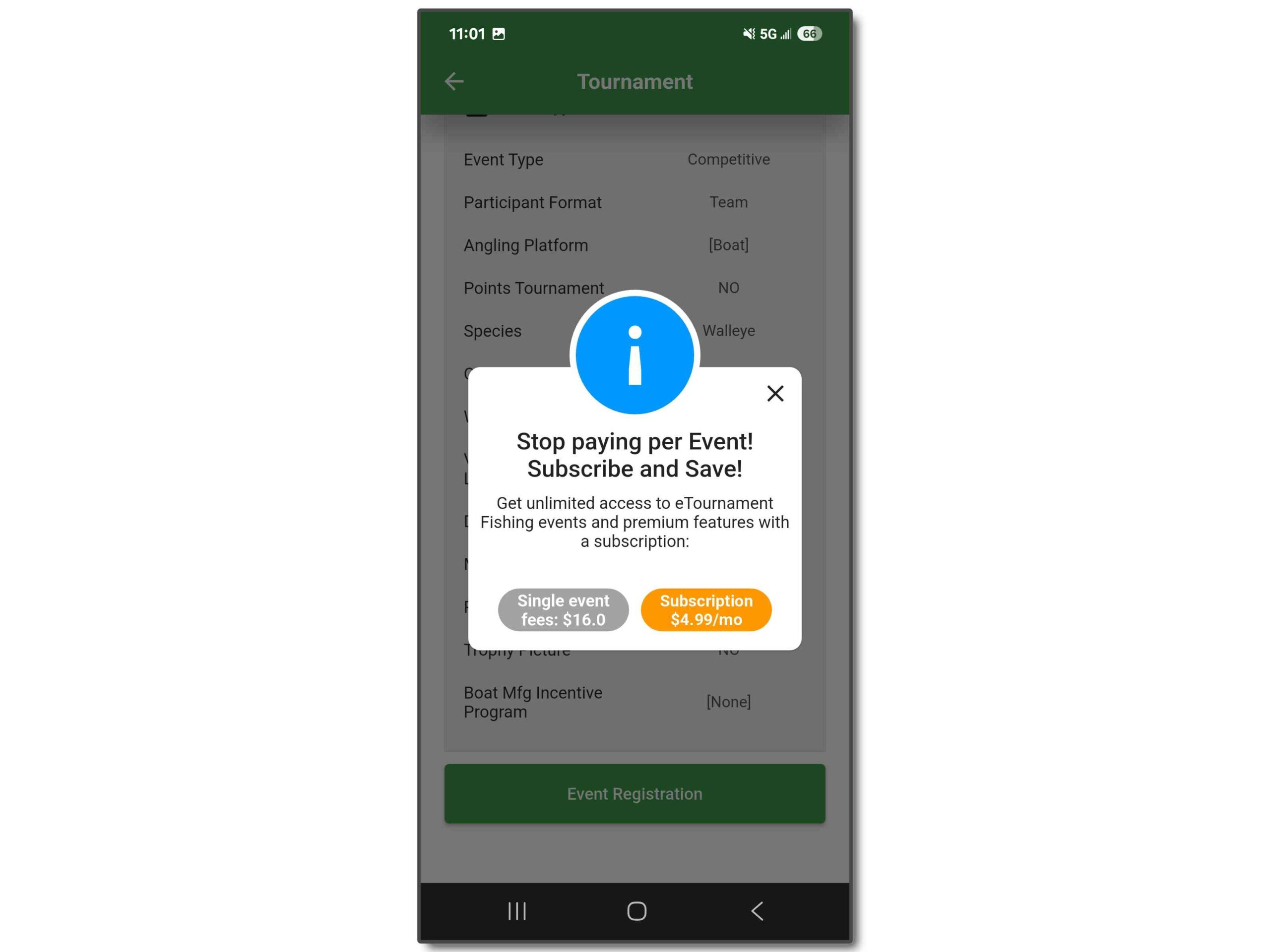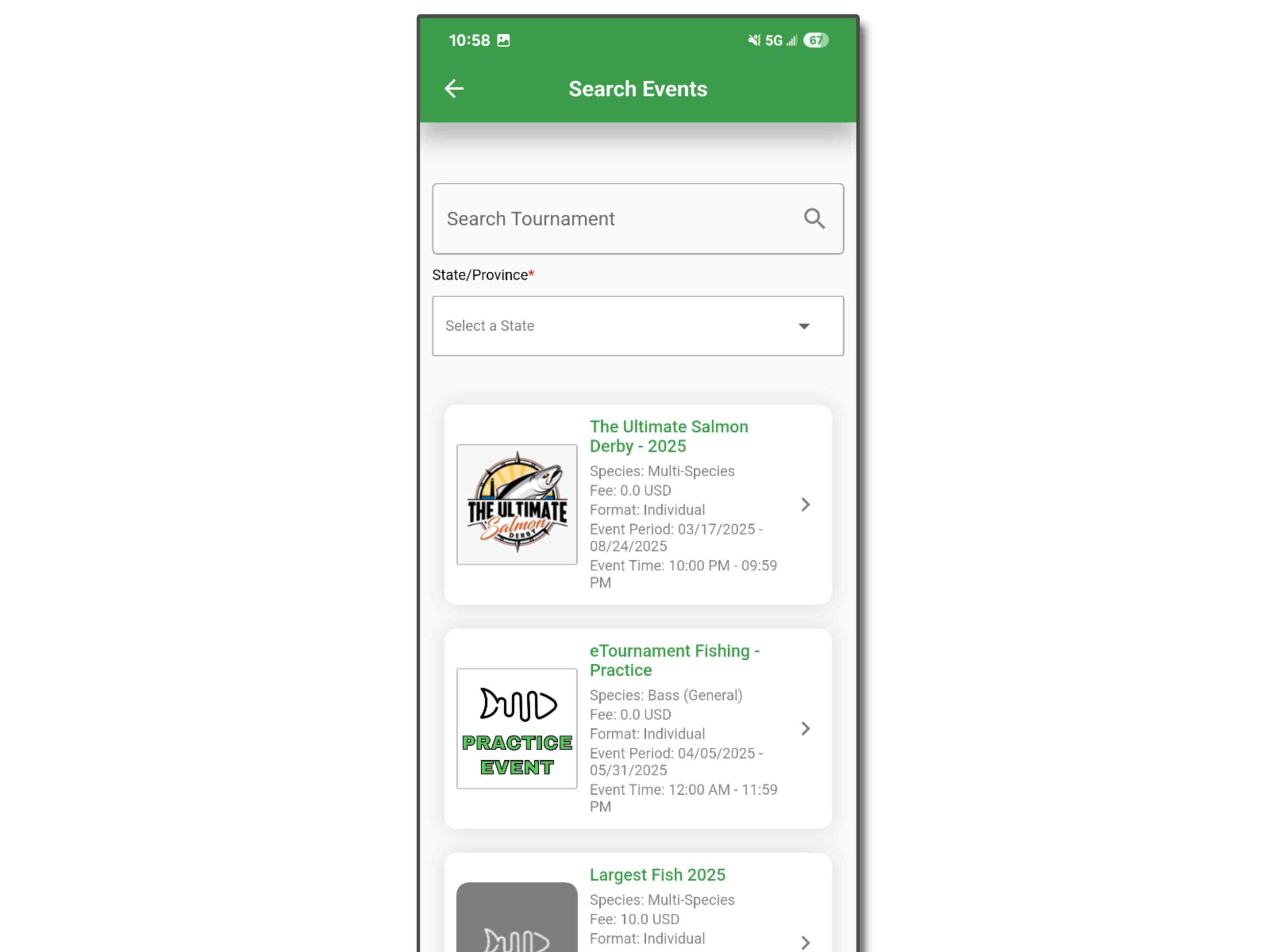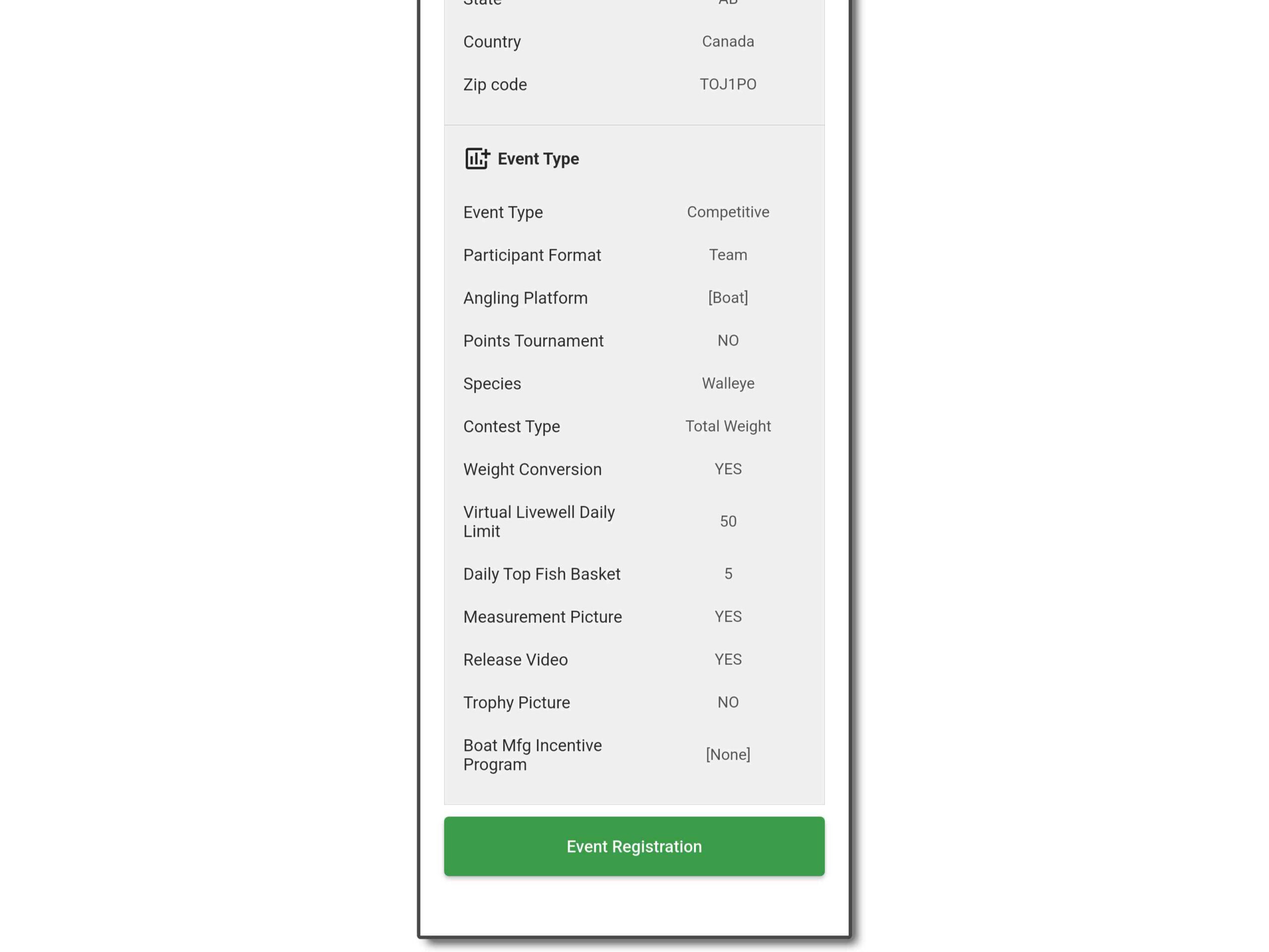 Follow these steps to register in the eTournament Fishing app